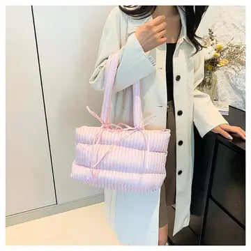 Features: * Striped * Large Capacity * Ultra Lightweight * Trendy Puffer Quilted Design * Daily Fitting * Button Closure Size: 30 * 22 * 10cm Weight: 0.23kg Material: * Cotton